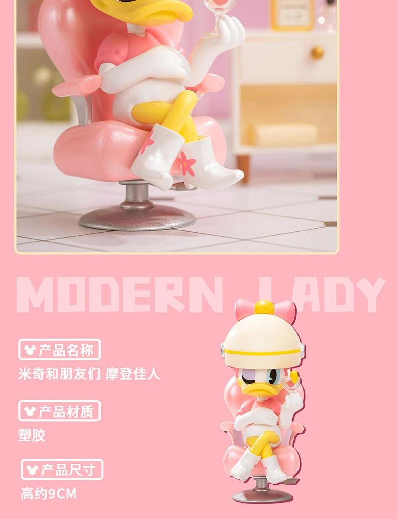 A: Modern Lady is a detailed Daisy Duck collectible from the 52TOYS Mickey and Friends series. It is not a blind box and comes as a single finished figure, crafted in ABS and designed for collectors who enjoy high quality Disney themed display pieces.