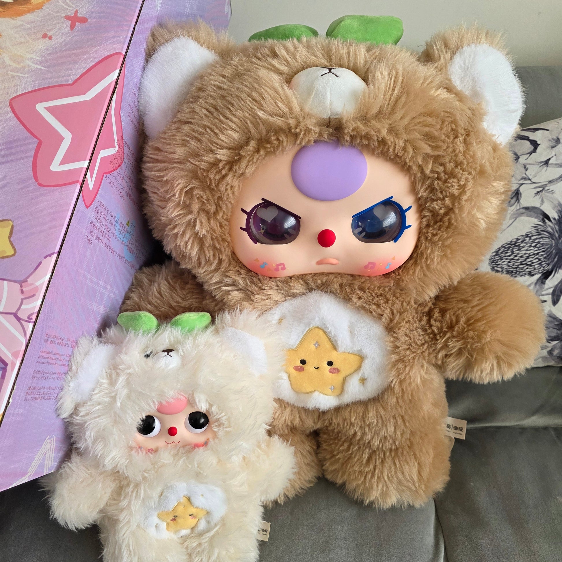 The Baby Three Cute Bear Series 1000% + 400% is a premium plush set designed for serious collectors who love oversized, statement pieces. Featuring the beloved Good Little Bear design, this set includes both a large 1000% plush and a smaller 400% companion, blending softness, charm, and display impact.