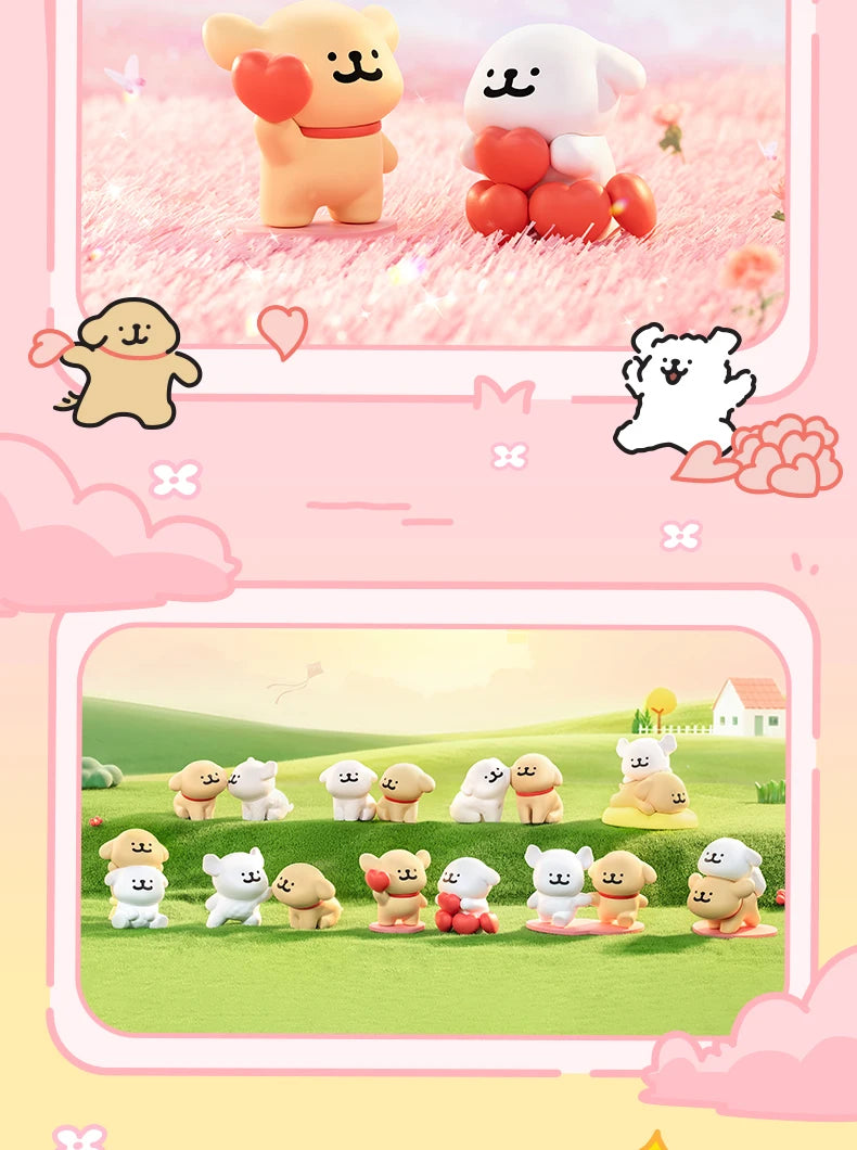 A: Each blind box contains one randomly selected Maltese figure from the Happy Snuggling Series. Collectors can unbox one of 8 regular designs or chase the rare hidden style (1/32 chance).