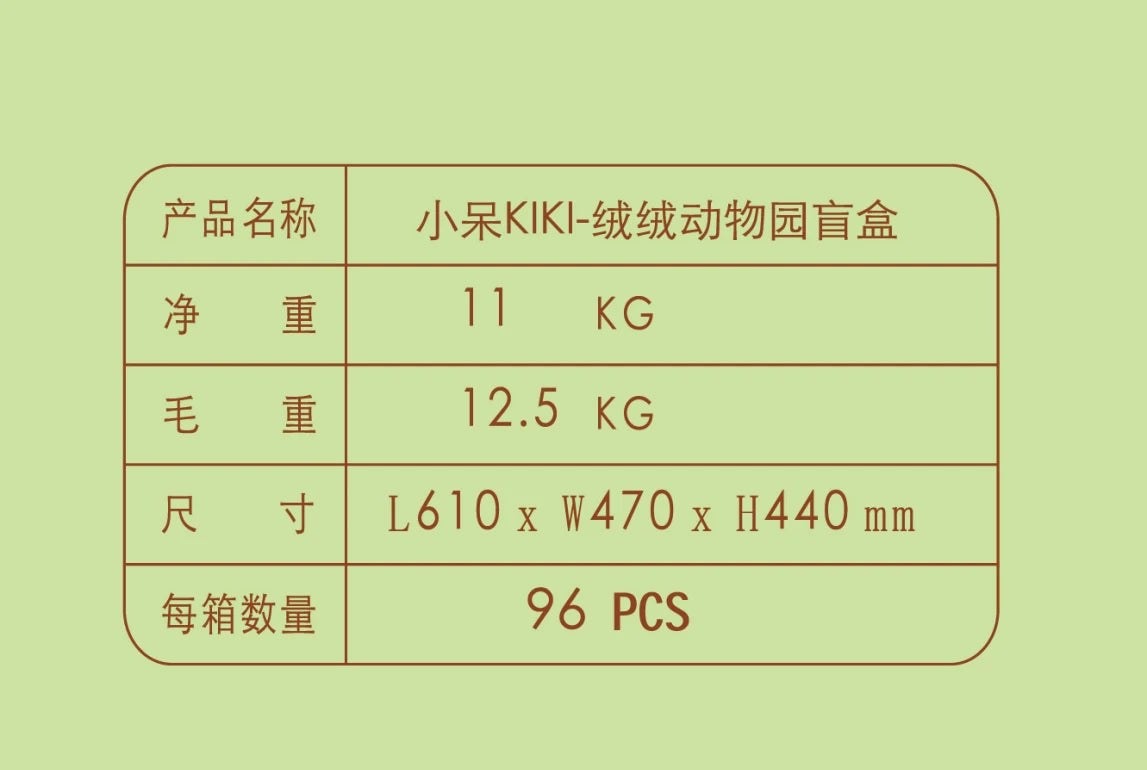 A: Each box includes one surprise animal plush from the Kiki Plush Zoo Series, cute, collectible, and full of personality, perfect for kawaii toy lovers and collectors.