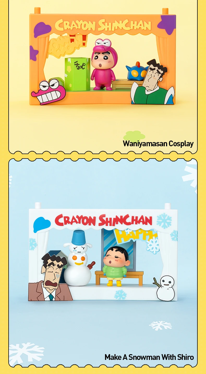 Add a touch of Shinchan’s mischief and charm to your collection with these fun scene sets.