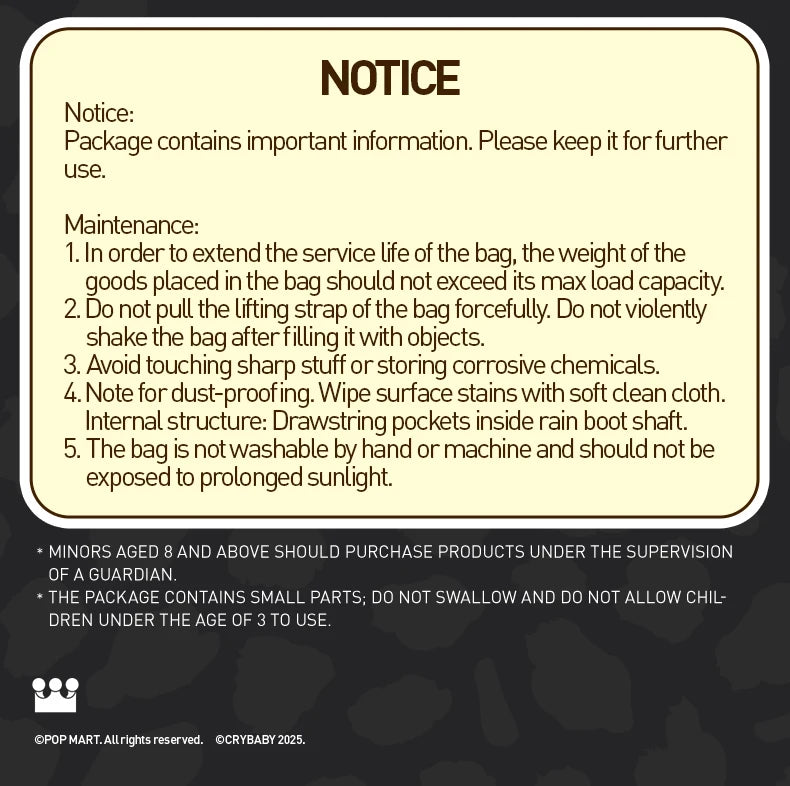 A: It’s a collectible accessory from POP MART’s CRYBABY Wild but Cutie Series, designed as a fun shoulder bag. Perfect for fans who want to carry a touch of kawaii style while celebrating their favourite CRYBABY collection.