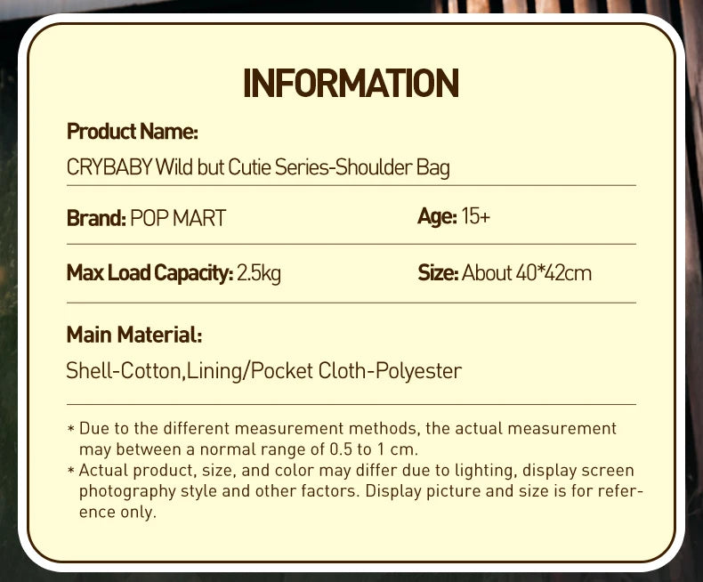 Q: What is the POP MART CRYBABY Wild but Cutie Shoulder Bag?