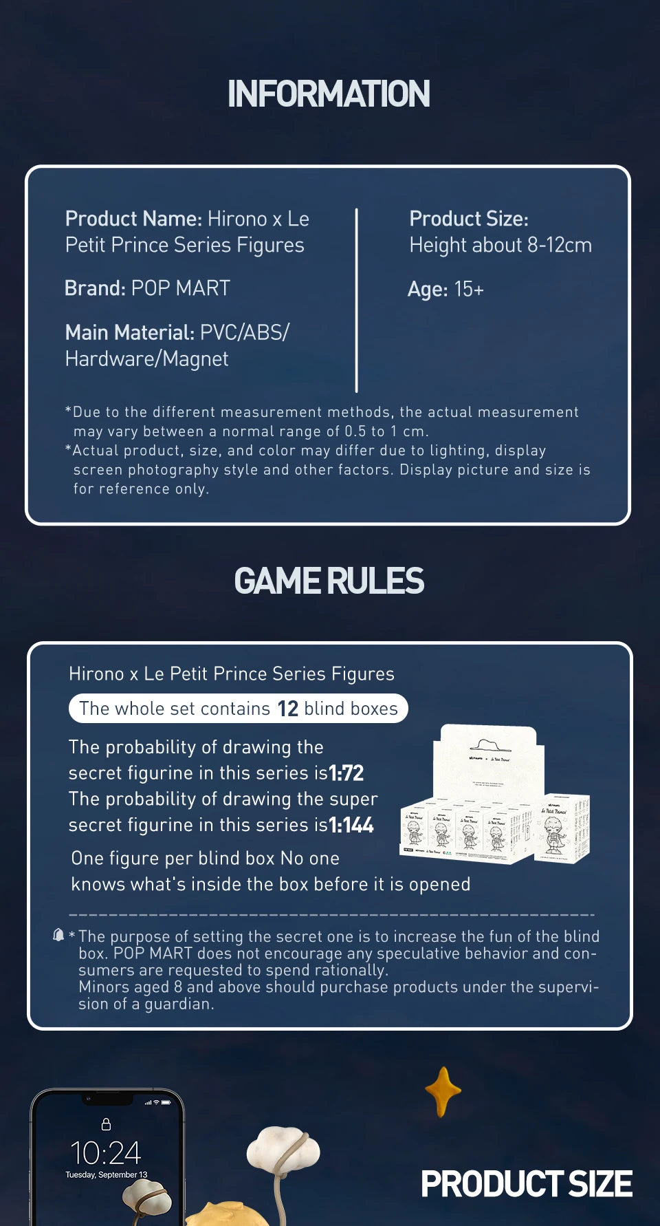 A: It is a POP MART blind box figure collection that reinterprets characters from The Little Prince through Hirono’s artistic lens. Each box includes one random figure, with the possibility of uncovering a rare secret or super secret edition.