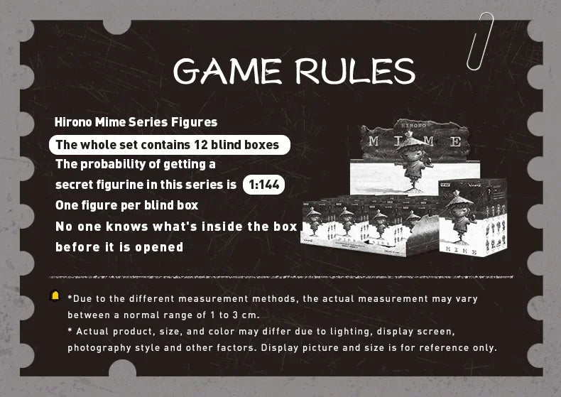 A: Each box contains one random Hirono Mime figure from the series. There are 12 standard designs and a rare secret edition. Figures are sealed, so the character remains a surprise until opened, making this series perfect for mystery-box collectors.