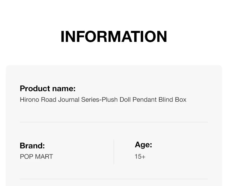 A: It is an official POP MART blind box containing one surprise Hirono Road Journal plush doll pendant. Each figure features soft plush textures, vinyl detailing, and a hanging loop, making it ideal for display or everyday use as a collectible accessory.