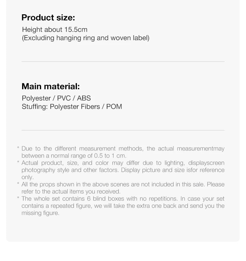 • One random plush doll pendant per blind box