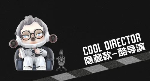 A: The secret chase figure is “Cool Director,” a rare 1:144 design that adds star power to this cinematic SKULLPANDA series. Each blind box includes one random collectible.