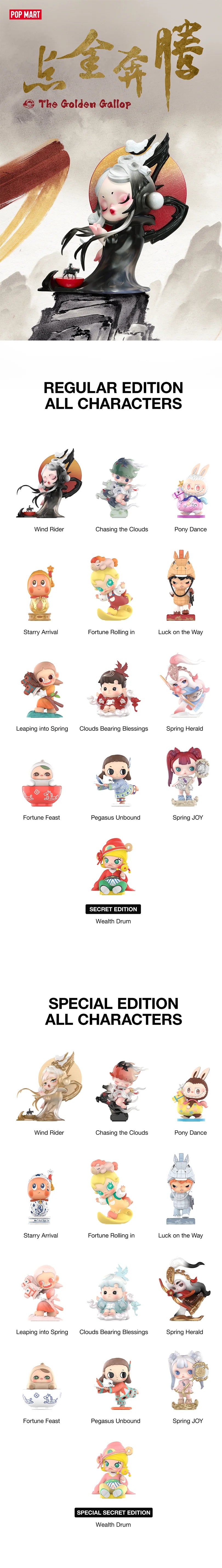 The POP MART The Golden Gallop Series transforms traditional folklore and fantasy themes into beautifully stylised collectible figures. Each character features intricate costume details, soft pastel colouring, and expressive sculpting inspired by classical Chinese art and mythical storytelling.