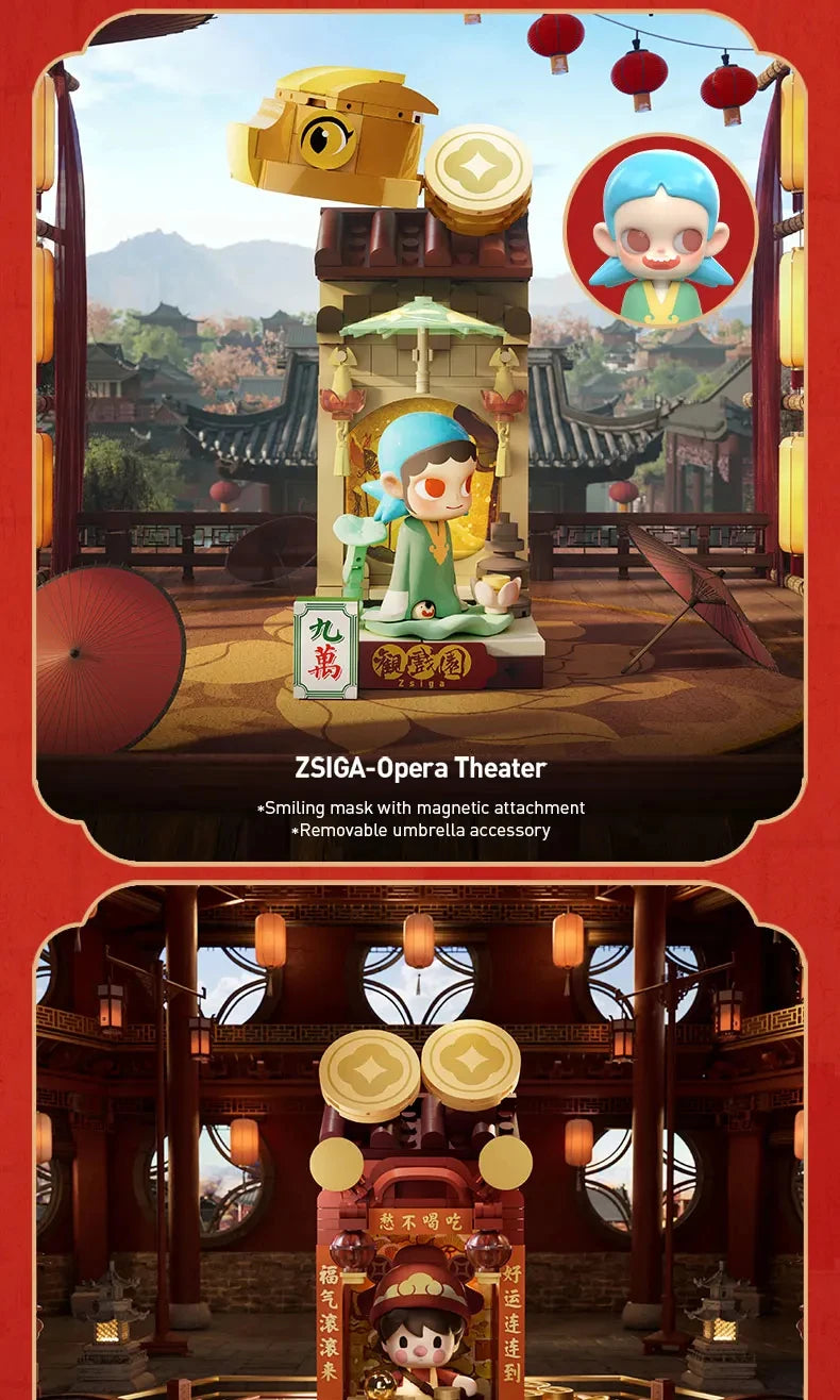 - Detailed diorama-style display blocks, can be connected to build a festive temple fair scene