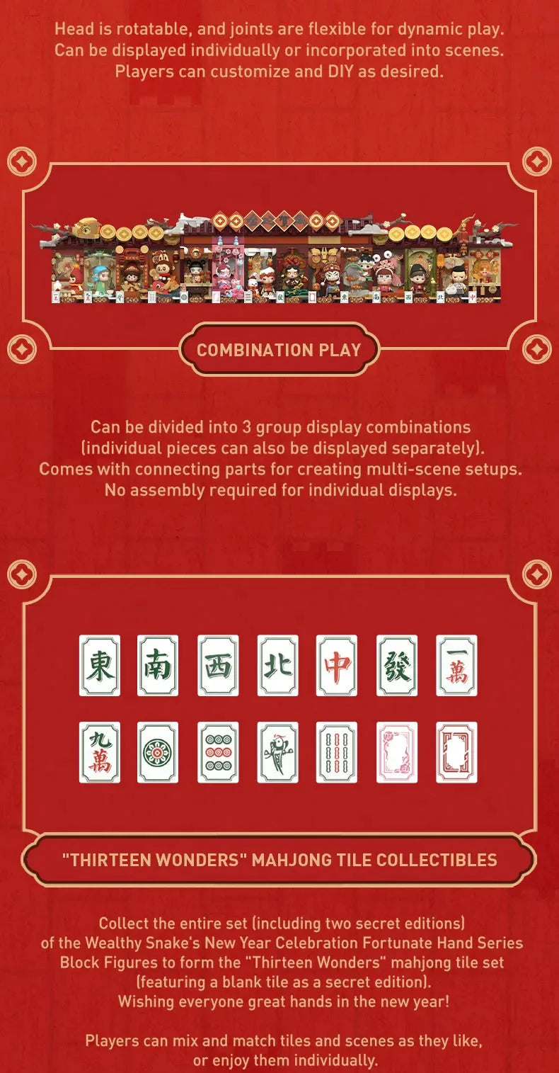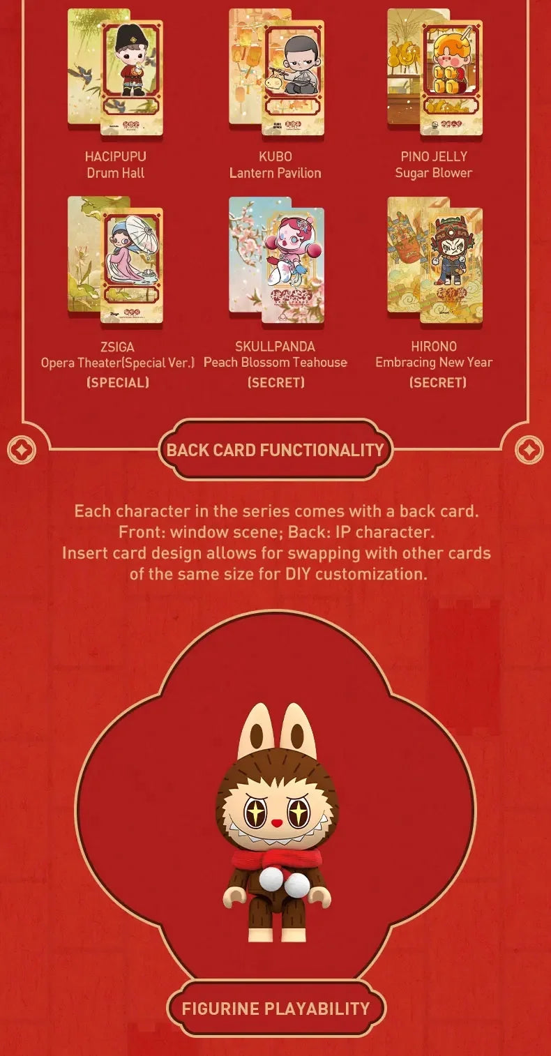 Celebrate the Lunar New Year with the POP MART Wealthy Snake’s New Year Celebration – Fortunate Hand Series, a stunning block-style blind box collection featuring iconic POP MART characters in festive temple fair scenes. Each display combines intricate sculpting and architectural detail, transforming beloved figures like LABUBU, MOLLY, DIMOO and SKULLPANDA into a joyful New Year celebration.