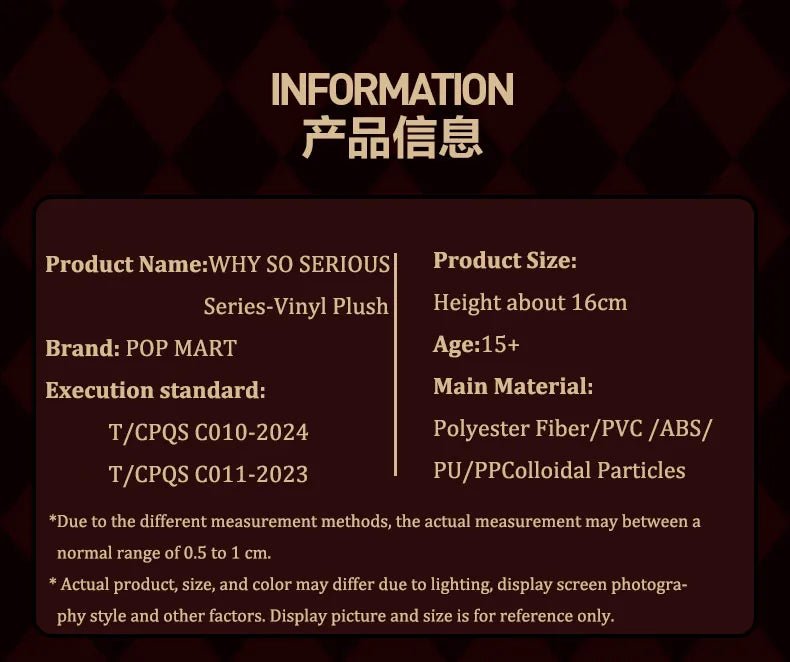 A: Each blind box includes one mystery POP MART Why So Serious collectible figure, crafted in high-quality PVC with detailed finishing, ideal for display or gifting to movie and art toy fans.