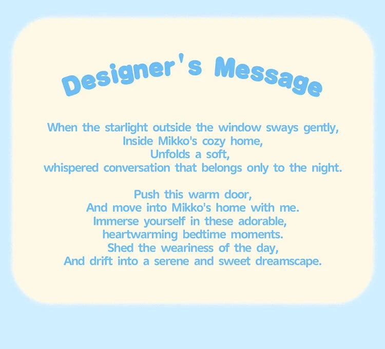 The Rolife Mikko Babies' Little World Blind Box Series brings the gentle charm of the Mikko illustrations universe to life in miniature collectible figures. Each blind box reveals a cosy scene featuring Mikko characters enjoying bedtime routines, relaxation, or playful moments in their tiny rooms. Designed as decorative cube-style displays, these adorable figures make charming desk companions or shelf collectibles.